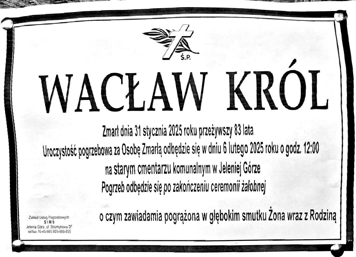 • Wacław Król s. Jana urodził się podczas trwania II wojny światowej, 2 kwietnia 1943 roku w miejscowości Sambor nad Dniestrem w województwie lwowskim.