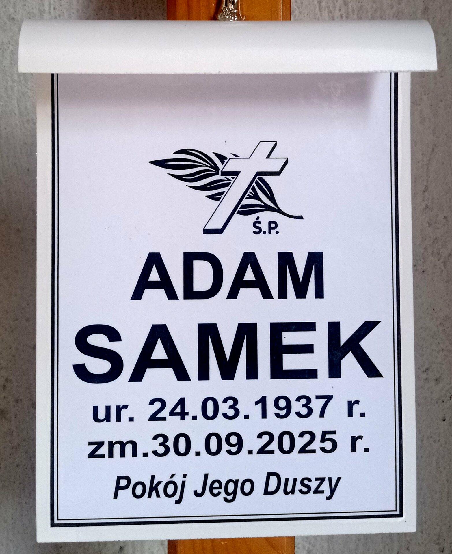 • Adam SAMEK syn Stanisława i Anny urodził się 24 marca 1937 r. w m. Gierczyce koło Bochni w województwie małopolskim.