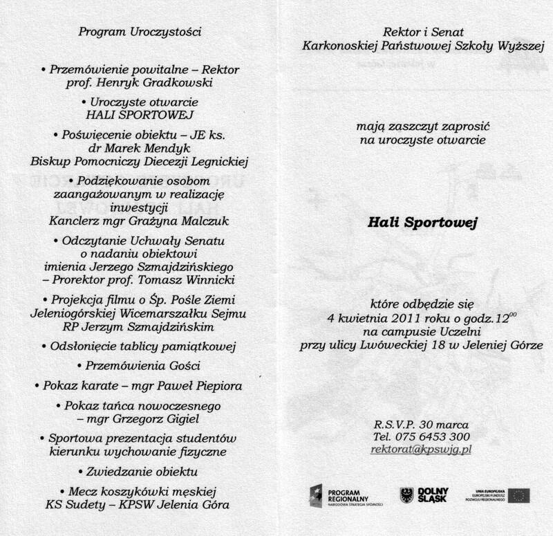 Z okazji otwarcia Hali Sportowej, od wszystkich żołnierzy byłego garnizonu jeleniogórskiego przekazuję – dla nauczycieli akademickich, instruktorów, trenerów i studentów – życzenia zadowolenia i satysfakcji z zajęć i treningów w tym pięknym, okazałym obiekcie oraz wielu wymiernych sukcesów, zarówno indywidualnych, jak i zespołowych, na arenach akademickich zmagań sportowych.