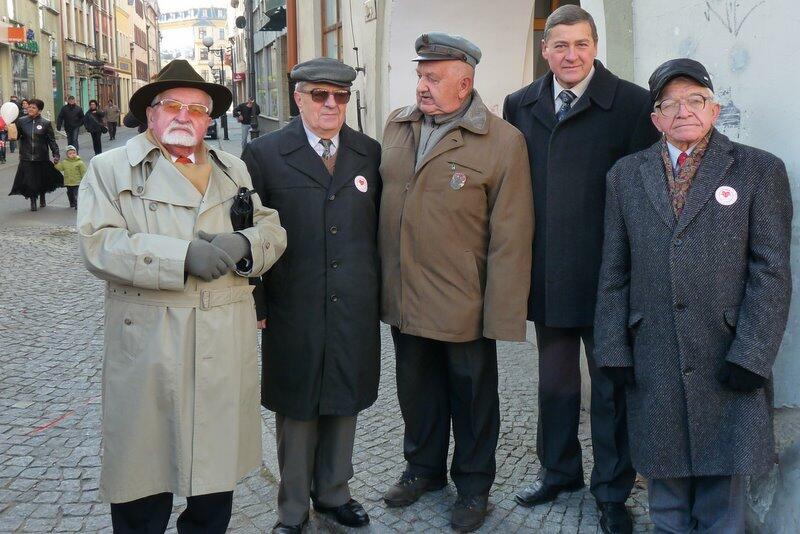 Następnie licznie zgromadzona młodzież (i nie tylko młodzież) udała się ulicą Marii Konopnickiej i ulicą 1-Maja w stronę pomnika "Niepodległość i Wolność". Tutaj już czekały poczty sztandarowe organizacji kombatanckich oraz poczty sztandarowe jeleniogórskich szkół.