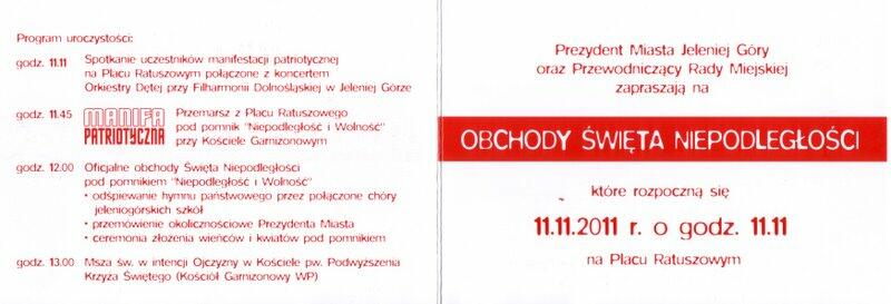 W tym roku to jest 11.11.11 obchody Narodowego Święta Niepodległości rozpoczęły się w Jeleniej Górze na Placu Ratuszowym o godz. 11:11.
