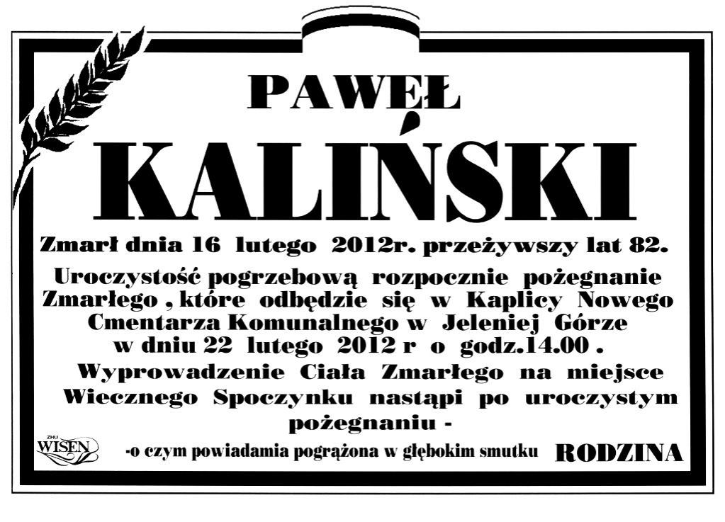 płk w st.spocz. mgr Paweł Kaliński. Miał prawie 82 lata.