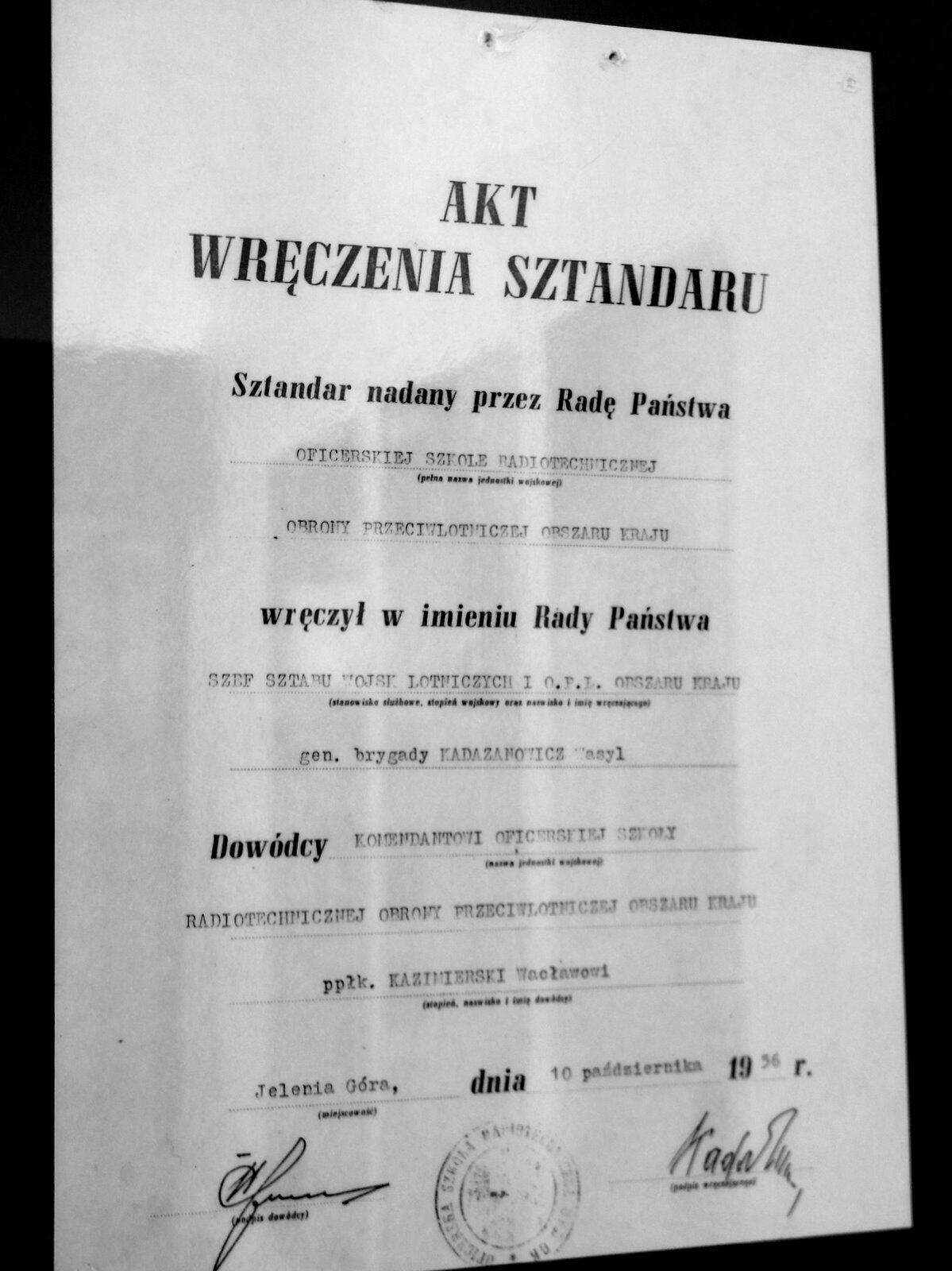 Podziękowania za prace w przygotowaniu wystawy "60 lat szkolnictwa radiotechnicznego 1952-2012" otrzymali od Kierownika Skansenu Uzbrojenia WP w Jeleniej Górze mgr. Stanisława Wilka:
