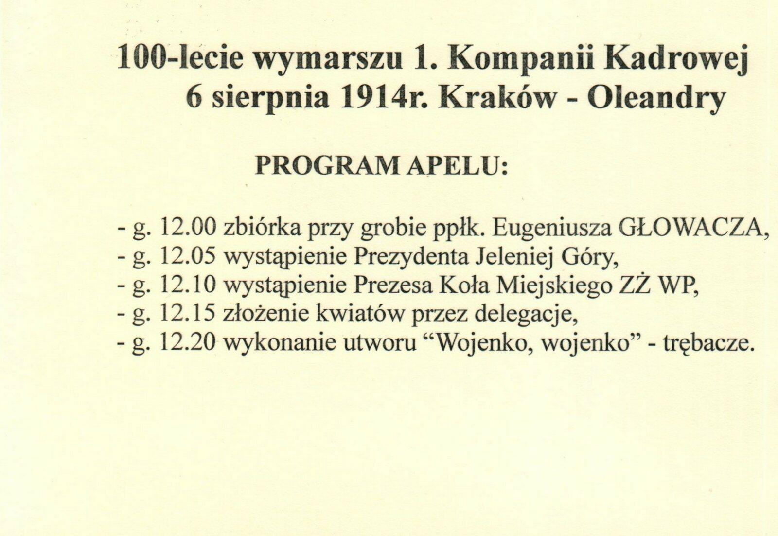 W dniu 6 sierpnia 2014 r. w 100. rocznicę wymarszu Pierwszej Kompanii Kadrowej - zalążka Legionów Polskich, Związek Żołnierzy WP w Jeleniej Górze oraz Jeleniogórskie Stowarzyszenie Żołnierzy Radiotechników "RADAR" zorganizował na cmentarzu w Jeleniej Górze - Sobieszowie przy grobie Eugeniusza Głowacza spotkanie patriotyczne.