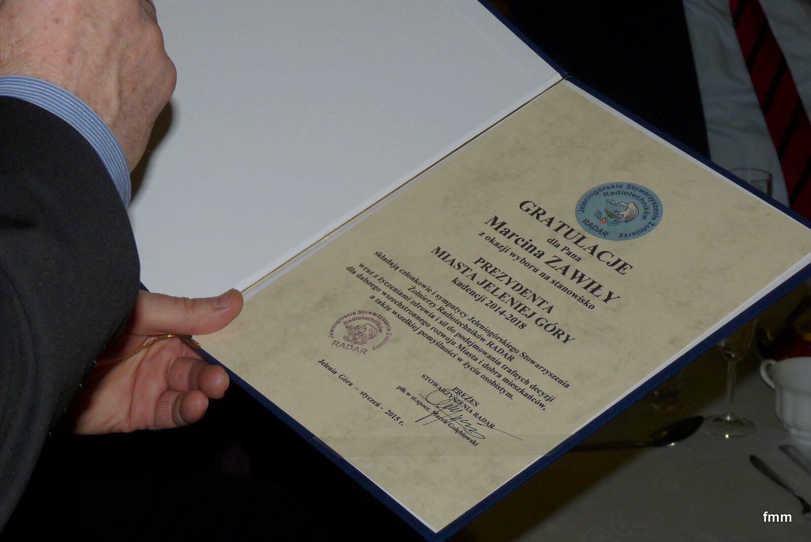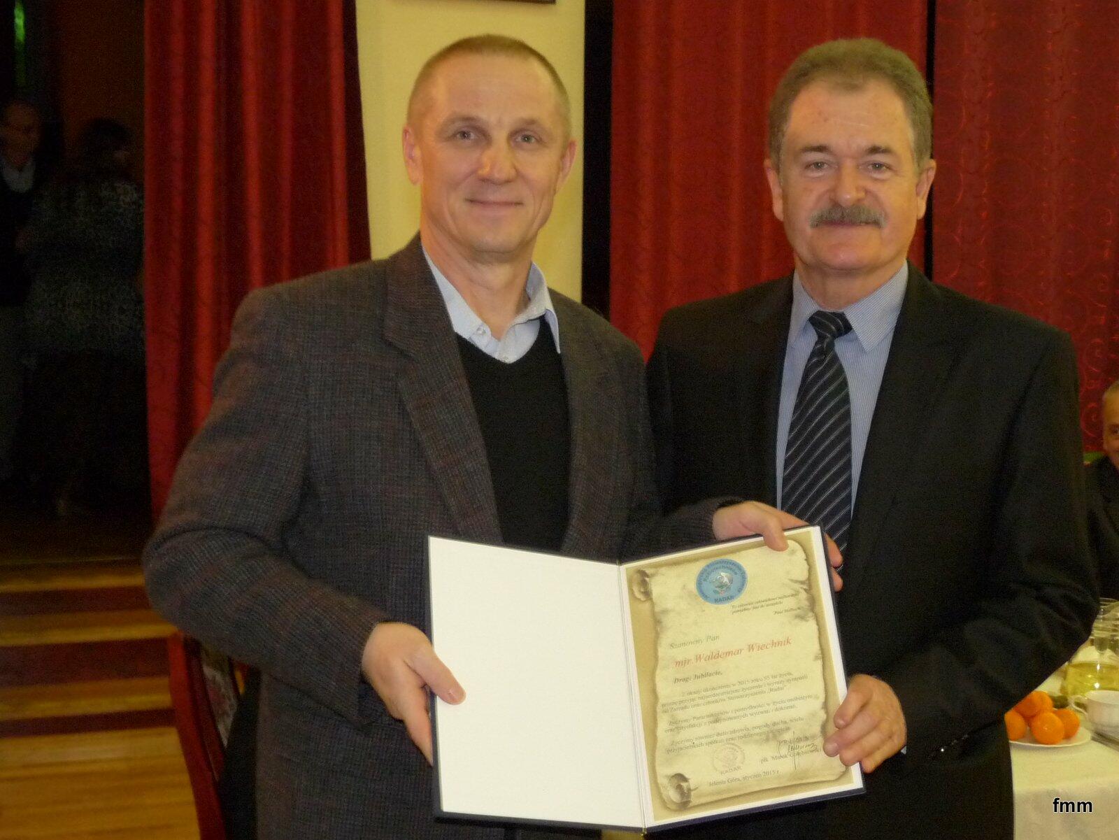 Podziękowanie za współpracę w 2014 r. otrzymał: