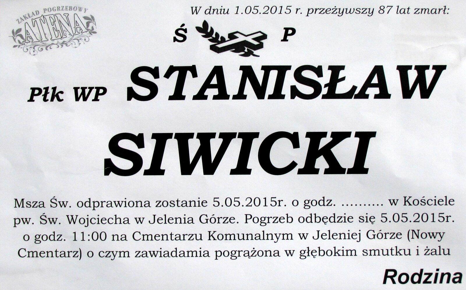 W dniu 1 maja 2015 r. zmarł w wieku 87 latpłk w st. spocz. Stanisław Siwicki- były kwatermistrz WOSR.Zmarłego pożegnano 5 maja 2015 r. na nowym cmentarzu w Jeleniej Górze.Cześć Jego pamięci.