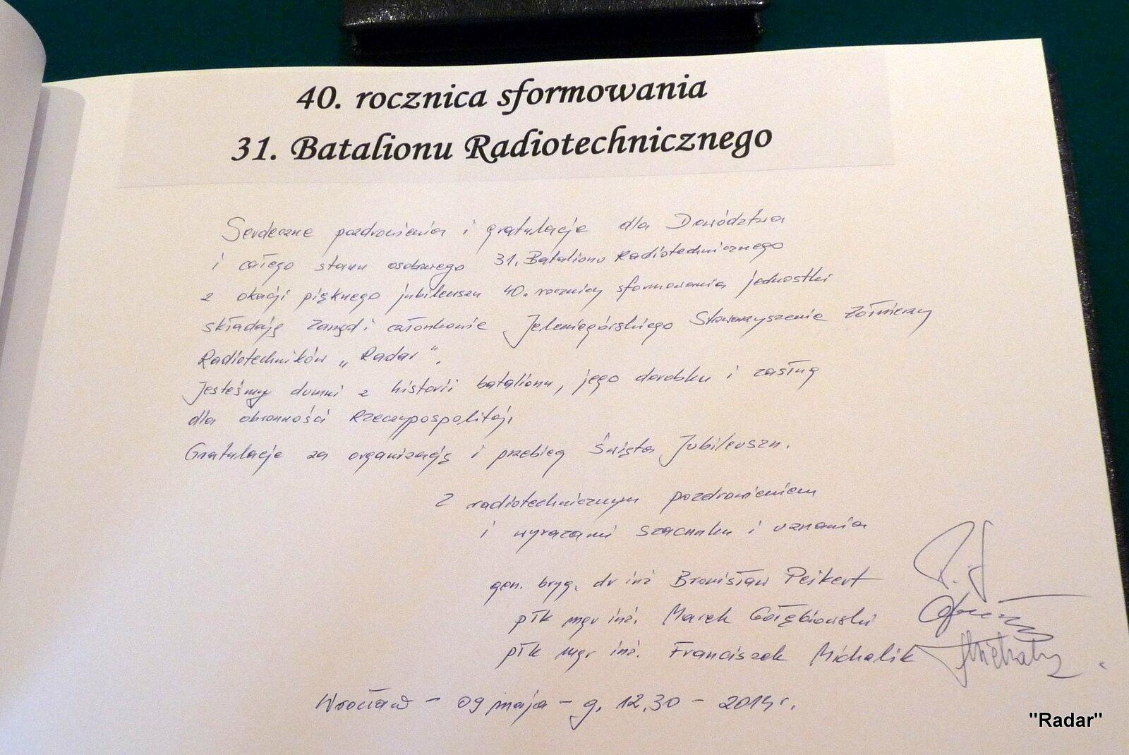 11 maja 2015 r. członkowie "Radaru" wraz z rodzinami odwiedzili 31 batalion radiotechniczny oraz dowództwo 3. Wrocławskiej Brygady Radiotechnicznej.