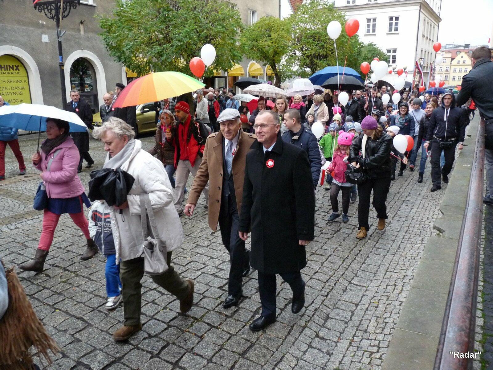 Licznie zebrani mieszkańcy Jeleniej Góry udali się ulicą Konopnickiej i ulicą 1 Maja pod pomnik "Niepodległość i Wolność", gdzie złożono wiązanki kwiatów.