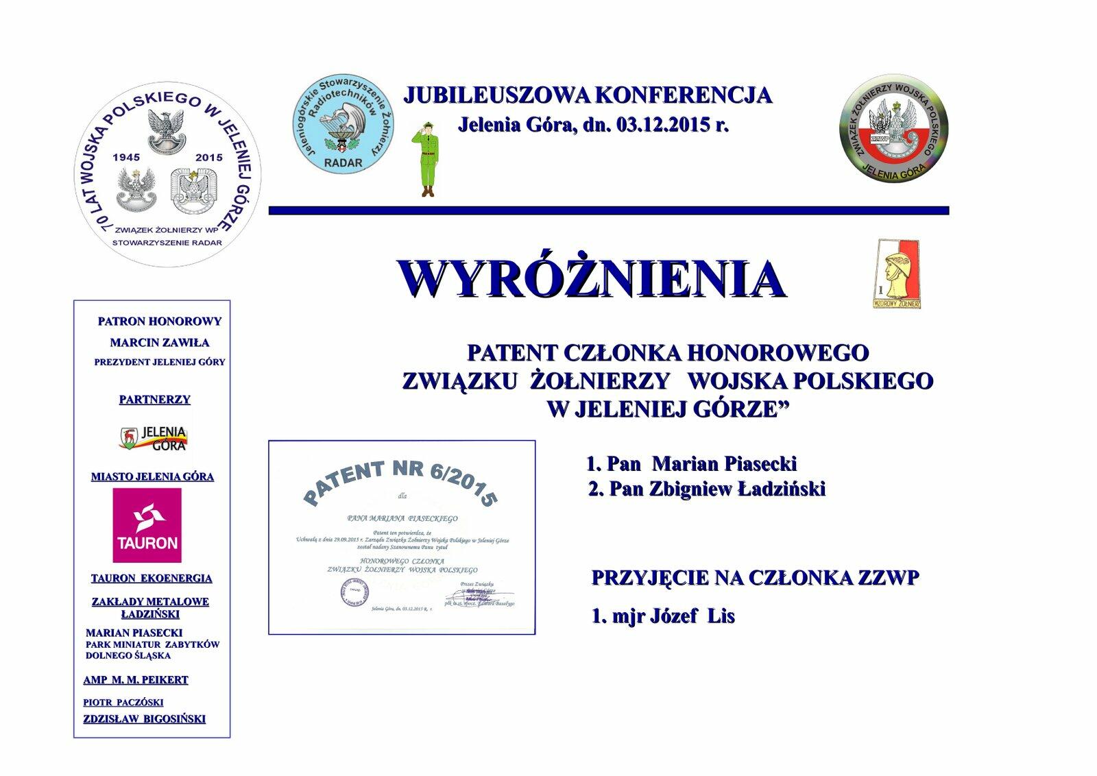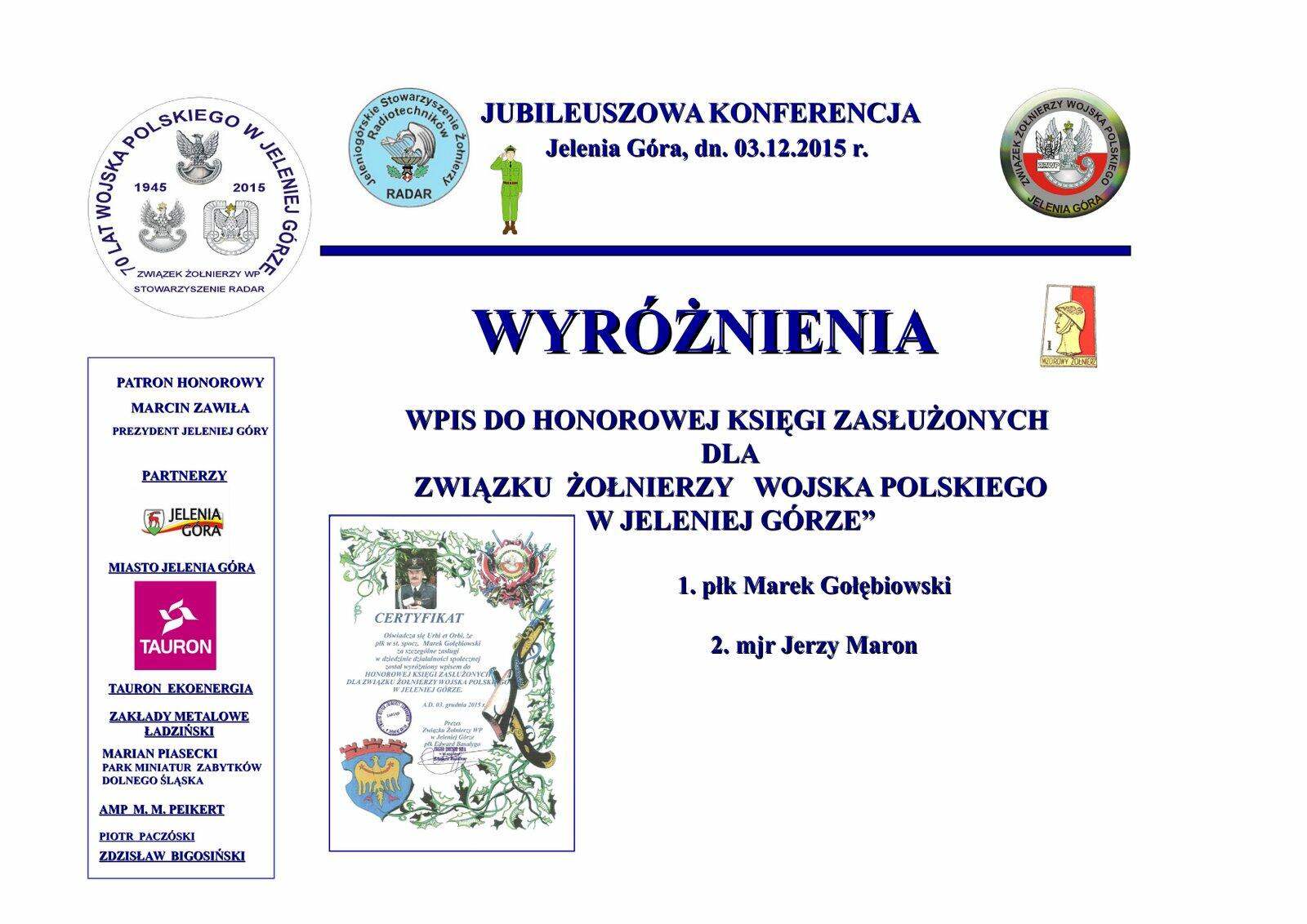 3 grudnia 2015 r. odbyła się Jubileuszowa Konferencja nt.: "70 lat Wojska Polskiego w Jeleniej Górze - 1945-2015".