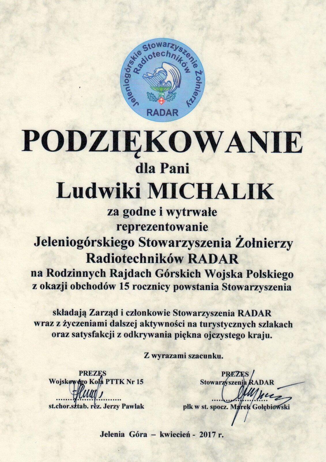 8 kwietnia 2017 r. odbylo się spotkanie z okazji 15 rocznicy powołania Jeleniogórskiego Stowarzyszenia Żołnierzy Radiotechników "Radar".