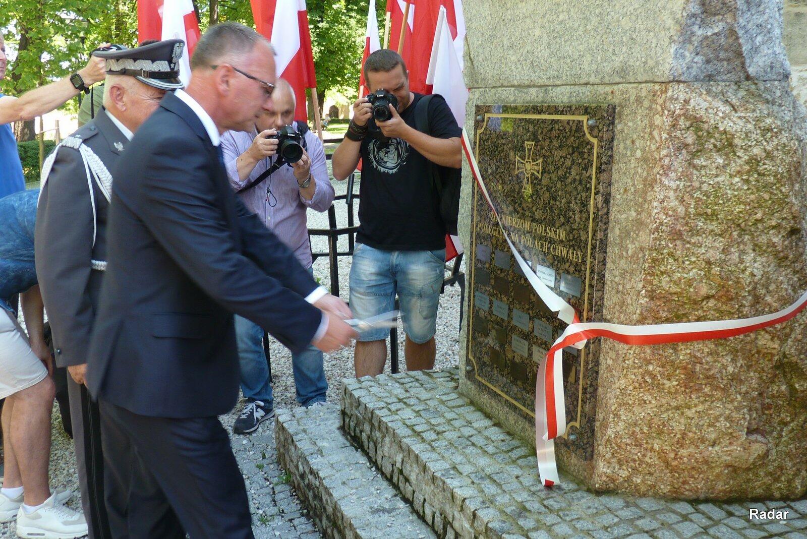 Natępnie dokonano oficjalnego odsłonięcia kolejnych tabliczek z nazwami miejscowości w ktrórych walczyli polscy żołnierze o wolność. W tym roku na pomniku "Wolność Krzyżami się Mierzy" umieszczono tabliczki z miejscowości Driel w Holandii (walki w 1944 r.) oraz miejscowości Mołotków w ówczesnych Austro-Węgrach (walki w 1914 r.).