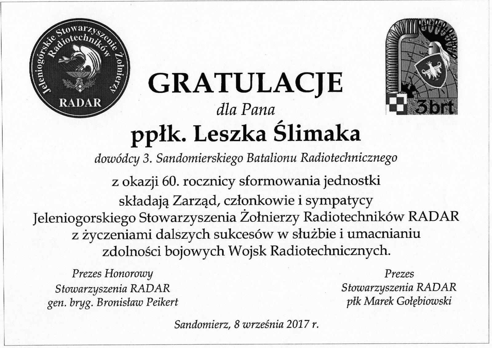 8 września 2017 r. w Sandomierzu odbyła się uroczystość związana z 60. rocznicą sformowania 3. batalionu radiotechnicznego.