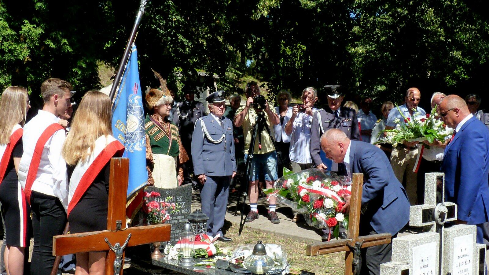 Uczestnicy uroczystości zebrali się na cmentarzu parafialnym w Sobieszowie, przy grobie ppłk. Eugeniusza Głowacza - żołnierza Pierwszej Kadrowej.