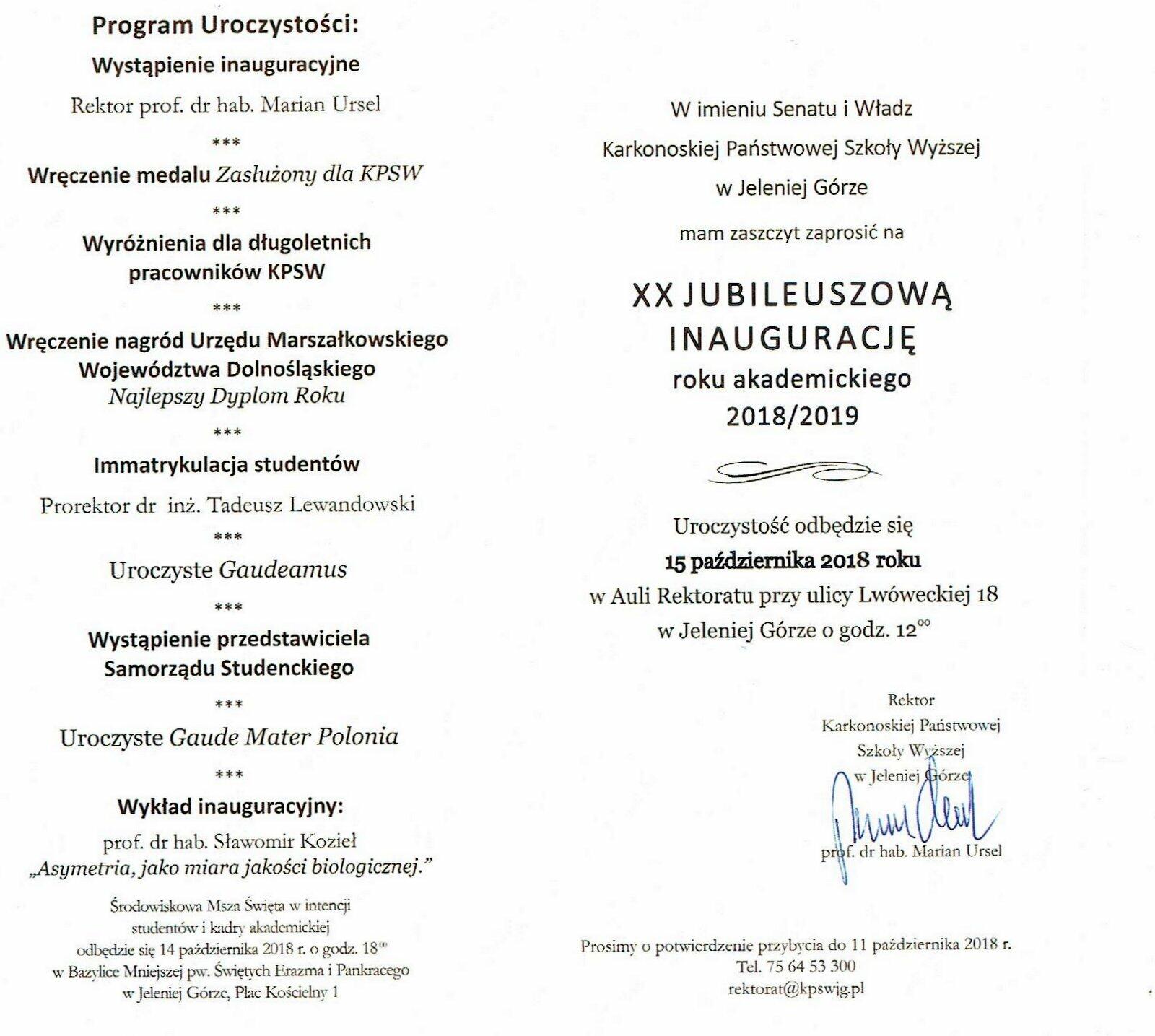 15 października 2018 r. odbyła się uroczysta Inauguracja Roku Akademickiego w Karkonoskiej Państwowej Szkole Wyższej.