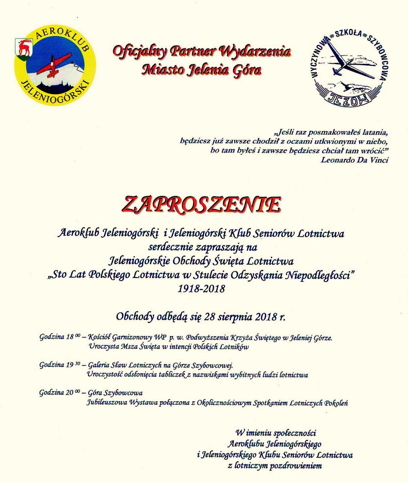 28 sierpnia 2018 r. w jeleniej Górze odbyły się uroczystości Święta Lotnictwa Polskiego.