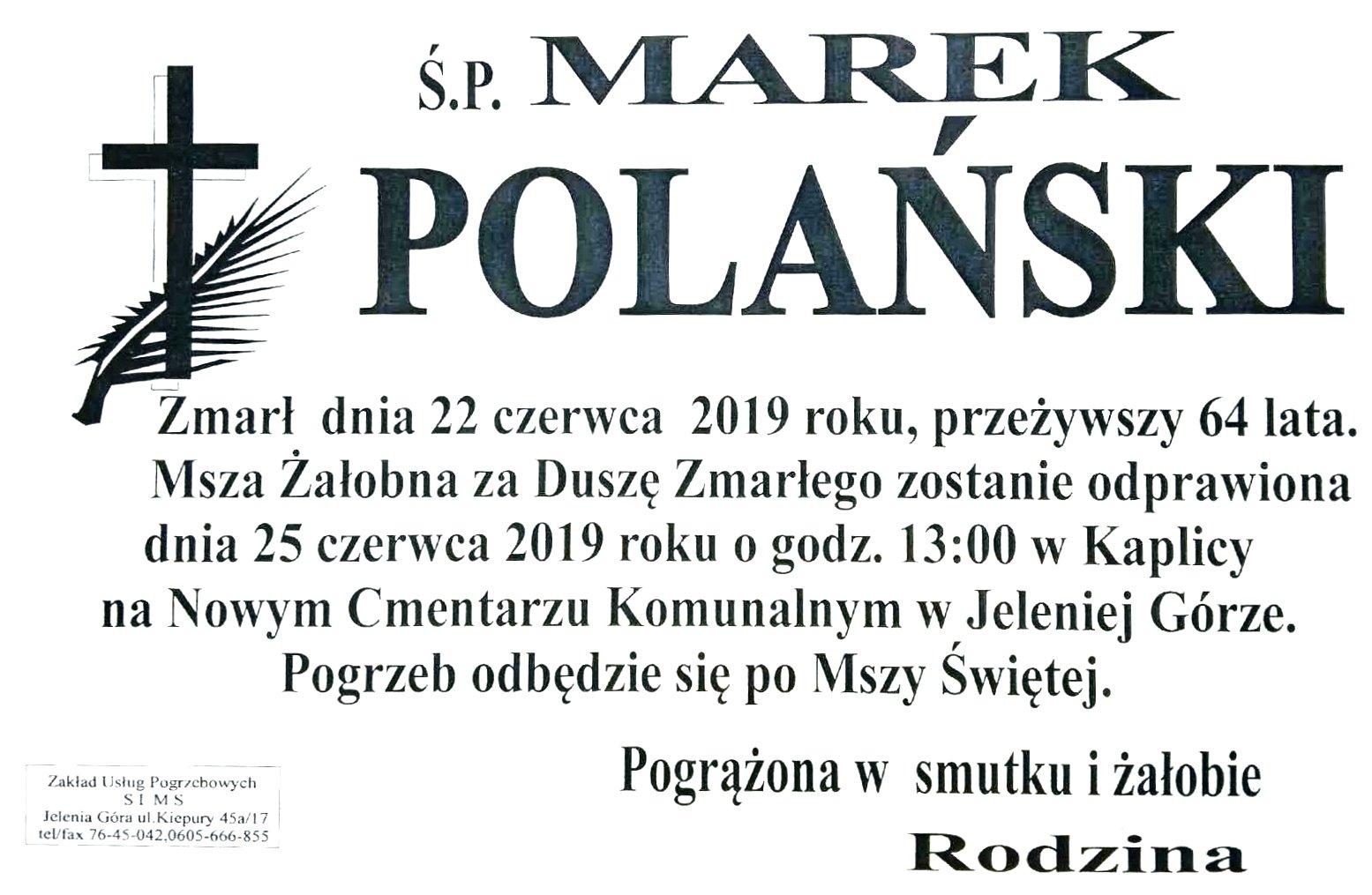 22 czerwca 2019 r. zmarł ppłk w st.spocz. Marek Polański.