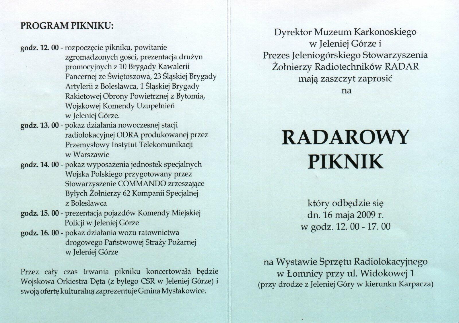 16 maja 2009 r. na terenie Wystawy Sprzętu Radiolokacyjnego w Łomnicy koło Jeleniej Góry odbył się Piknik Militarny zorganizowany przez Muzeum Karkonoskie i JSŻR "Radar".